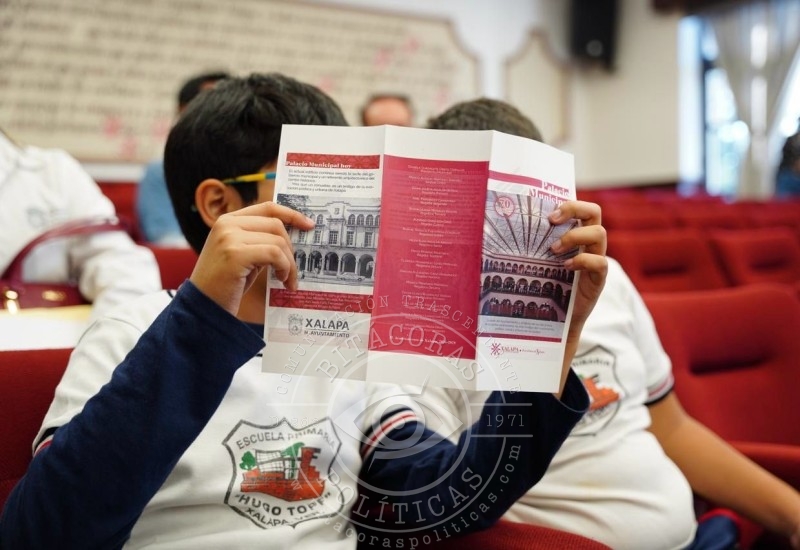 La presidenta municipal de Xalapa, Daniela Griego Ceballos, encabezó una jornada cívica con alumnas y alumnos de la Escuela Primaria Hugo Topf, quienes visitaron el Palacio Municipal para conocer su historia, el funcionamiento del Ayuntamiento y dialogar con autoridades locales. La actividad forma parte del programa Memoria y Ciudadanía. Patrimonio y Gobierno Municipal.