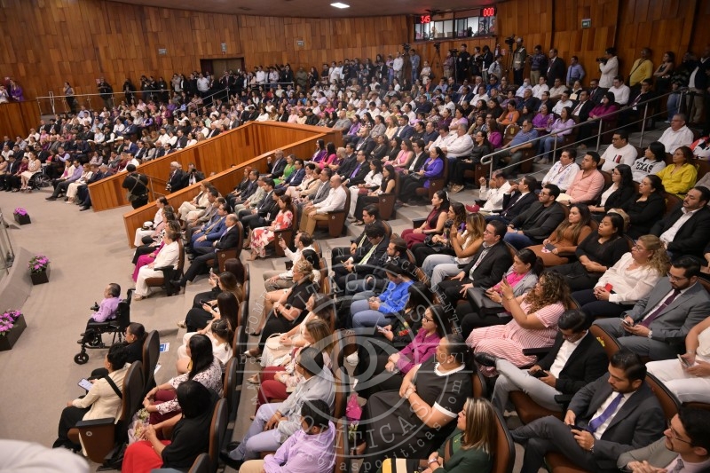 El acto reunió a representantes de los tres poderes del estado. Acompañaron a la mandataria la presidenta de la Mesa Directiva de la LXVII Legislatura, Naomí Edith Gómez Santos, y la magistrada presidenta del Poder Judicial, Rosalba Hernández Hernández, quienes coincidieron en que la trayectoria de la galardonada representa un ejemplo de vocación científica y servicio social.