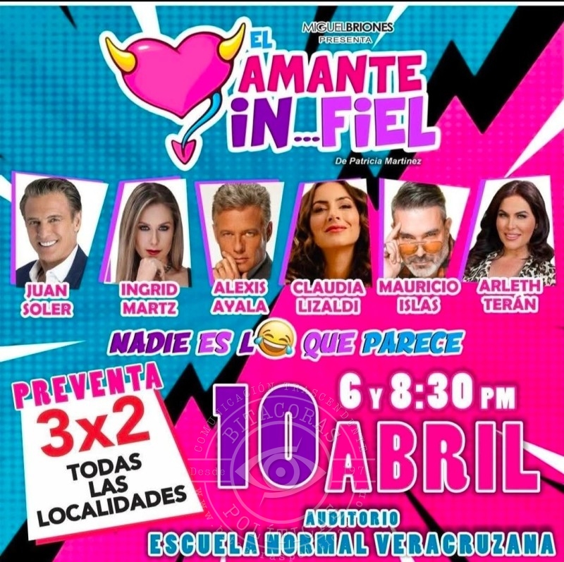 La comedia teatral “El Amante In…Fiel”, producción escénica dirigida por Patricia Martínez y presentada por Miguel Briones, llegará a Xalapa el próximo 10 de abril con dos funciones programadas en el Auditorio de la Escuela Normal Veracruzana.