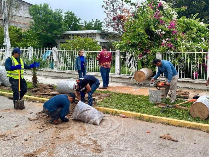Desde las primeras horas, personal municipal realiza recorridos de supervisión y trabajos de retiro de árboles y ramas, principalmente en zonas donde el paso vehicular o peatonal se vio comprometido por los efectos del sistema meteorológico.