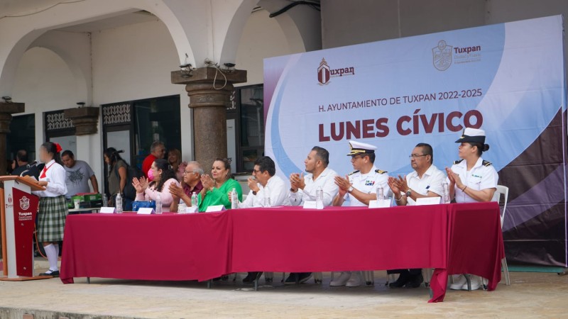 Encabezaron el acto el Prof. Jorge Arturo García Robles, director de Educación, en representación del alcalde Jesús Fomperoza Torres; el regidor comisionado en el área, Prof. Luis Demetrio López Marín; la regidora Maryanela Monroy Flores; la Cap. Fgta. C.G. DEM. Leslie Rosas Meléndez, en representación de la Fuerza Naval del Golfo; la Tte. Corb. Miriam Becerril Aguilar, en representación del Sector Naval de Tuxpan.