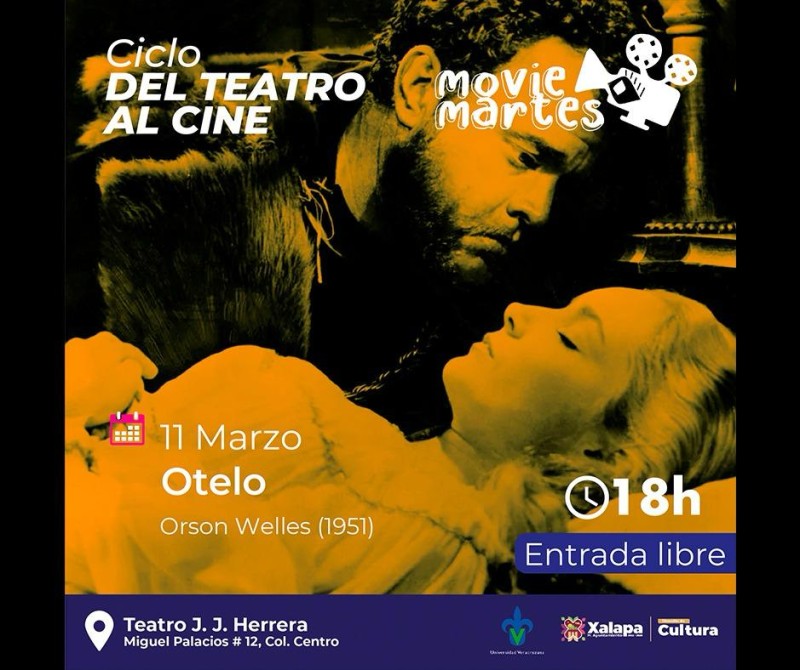 Xalapa, Ver. - El martes 11 de marzo como parte del ciclo “Del teatro al cine”, se proyectará la película “Otelo”, dirigida por Orson Welles. Esta función se llevará a cabo a las 18:00 horas en el Teatro J. J. Herrera. /