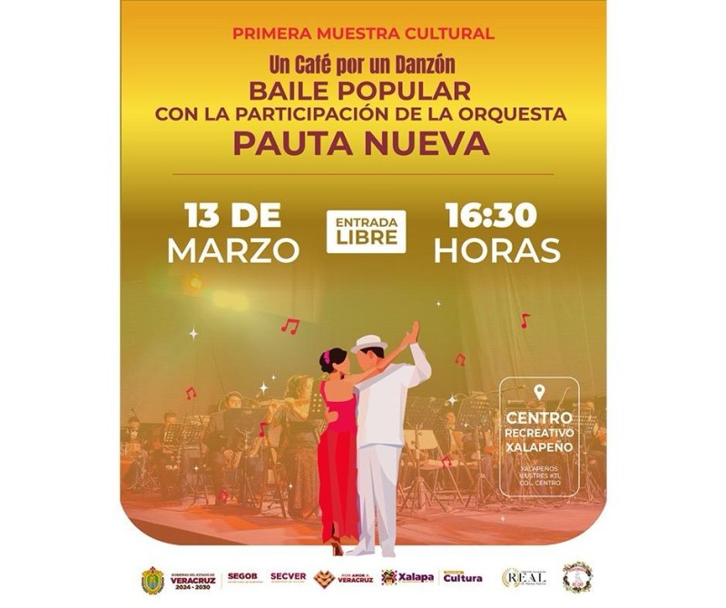 Xalapa, Ver. - El jueves 13 de marzo, a las 10:00 horas, en el Centro Recreativo Xalapeño se presentará la primera muestra cultural de “Un café por un danzón”, actividad que contará con conversatorios, talleres, obras artísticas y un baile a cargo de la Orquesta Pauta Nueva. /