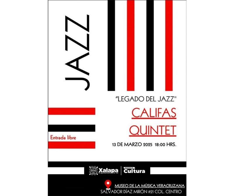 Xalapa, Ver. - El jueves 13 de marzo, a las 18:00 horas, en el Museo de la Música Veracruzana, se desarrollará el concierto “Legado del Jazz, Califas Quintet” /