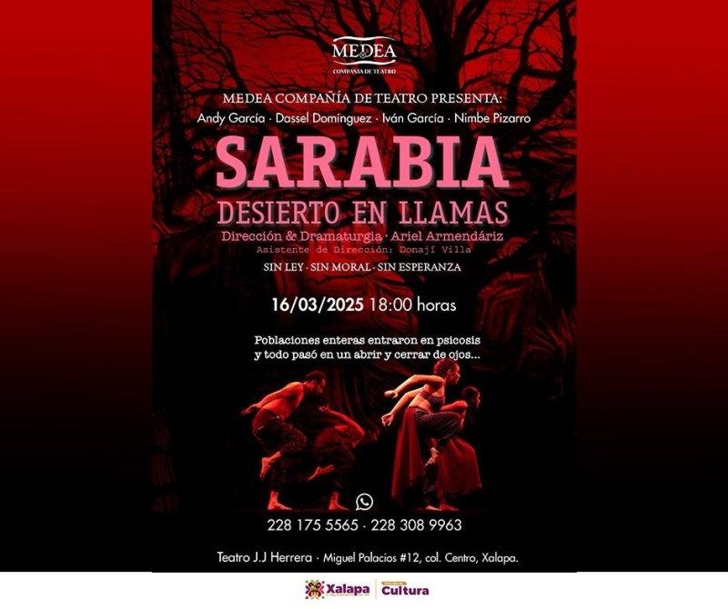 Xalapa, Ver. - El domingo 16 de marzo, a las 18:00 horas, en el Teatro J. J. Herrera, se tendrá la obra “Sarabia, desierto en llamas”, de Medea Compañía de Teatro. /