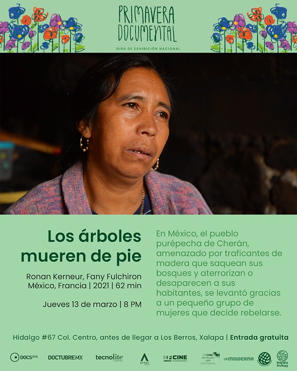 Xalapa, Ver. - Jueves 13 de marzo | Los árboles mueren de pie | Dir. Ronan Kerneur y Fany Fulchiron En México, el pueblo de Cherán está amenazado por traficantes de madera que saquean sus bosques y aterrorizan a sus habitantes. Liderado por un grupo de mujeres, el pueblo decide rebelarse. /