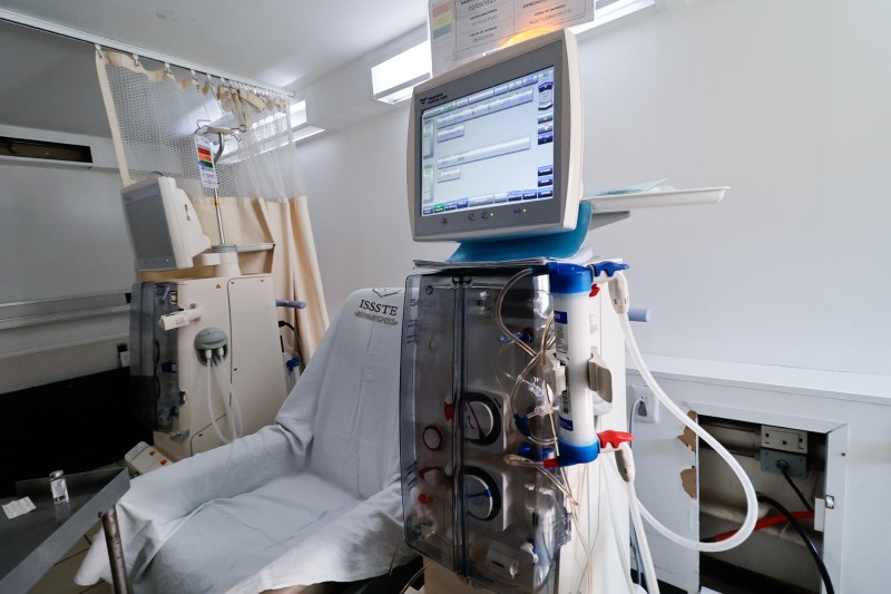 “La hemodiálisis es un tratamiento sustitutivo de la función renal en la que ayudamos al paciente a depurar las toxinas y a eliminar el líquido que el riñón desarma. En esta área atienden 46 médicas y médicos; cuenta con 22 máquinas Fresenius 5008S CorDiax. Con estas máquinas se suple la función de depuración del riñón, tanto de toxinas, como de agua, y la función endocrina se suple con medicamentos”, explicó.