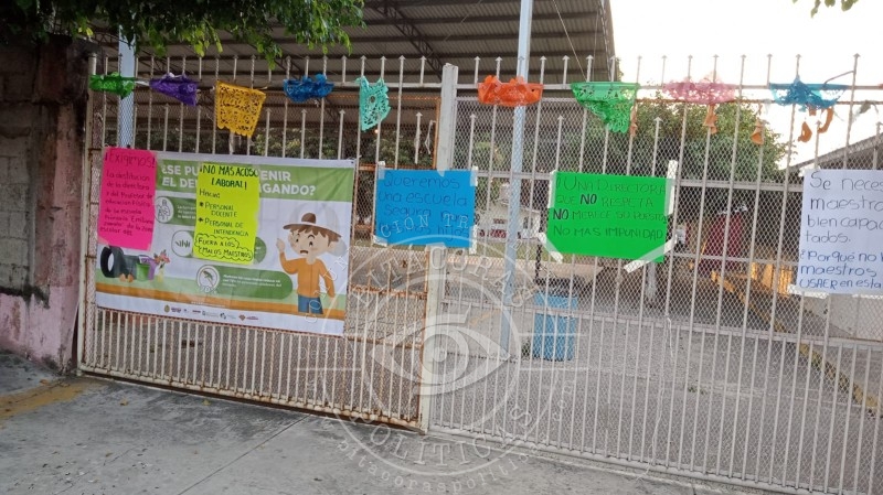 Cuitláhuac, Ver.- Padres de familia de la escuela primaria Emiliano Zapata, de la localidad Mata Clara, tomaron las instalaciones de este plantel, para exigir la destitución de la directora, a quien acusan de incurrir en acoso laboral en contra de los docentes y personal de intendencia.