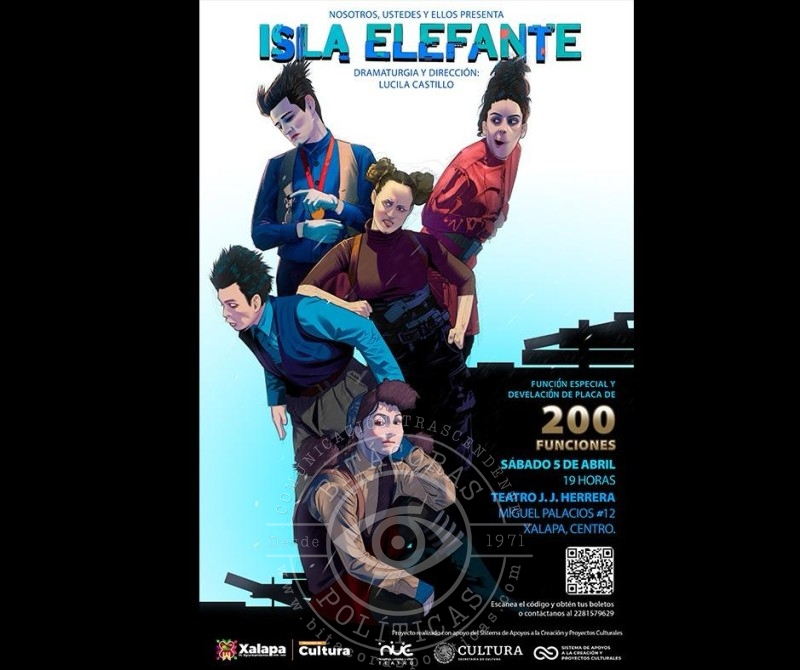 A las 19:00 horas, en el Teatro J. J. Herrera, la compañía Nosotros, Ustedes y Ellos presentará “Isla Elefante”, obra de Lucila Castillo con motivo de la develación de placa por sus 200 funciones.