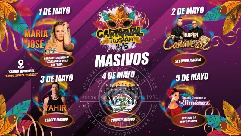 Del 1 al 5 de mayo, el puerto vibrará con los conciertos de María José, Grupo Cañaveral, Yahir, La Original Banda El Limón y Natalia Jiménez; Wendy Guevara y Nicola Porcella participarán en los desfiles