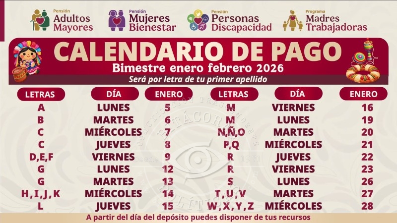 Adultos mayores, mujeres de 60 a 64 años, personas con discapacidad y madres trabajadoras reciben el bimestre enero–febrero exclusivamente en la Tarjeta del Banco del Bienestar.