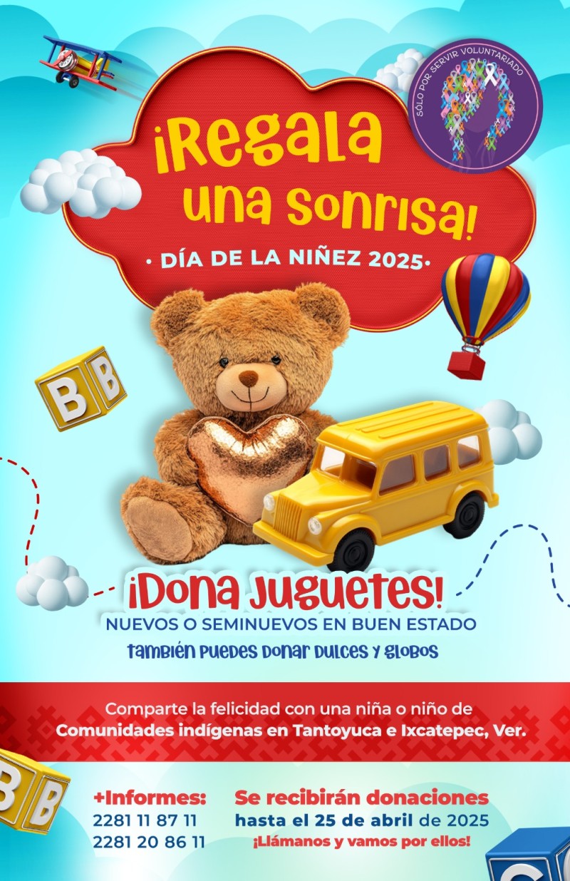 La magistrada Rosalba Hernández y el Voluntariado "Solo por Servir" invitan a donar juguetes nuevos o seminuevos hasta el 25 de abril. También reciben tapitas para apoyar a niños con cáncer