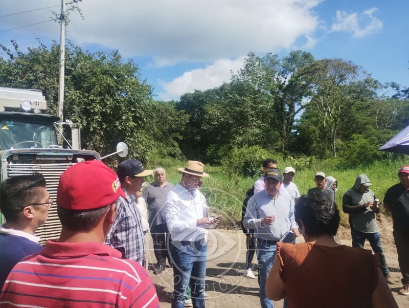 Habitantes de la comunidad denuncian afectaciones por el tránsito de camiones pesados; tras protesta, autoridades y empresa constructora firman minuta para reparar los daños.