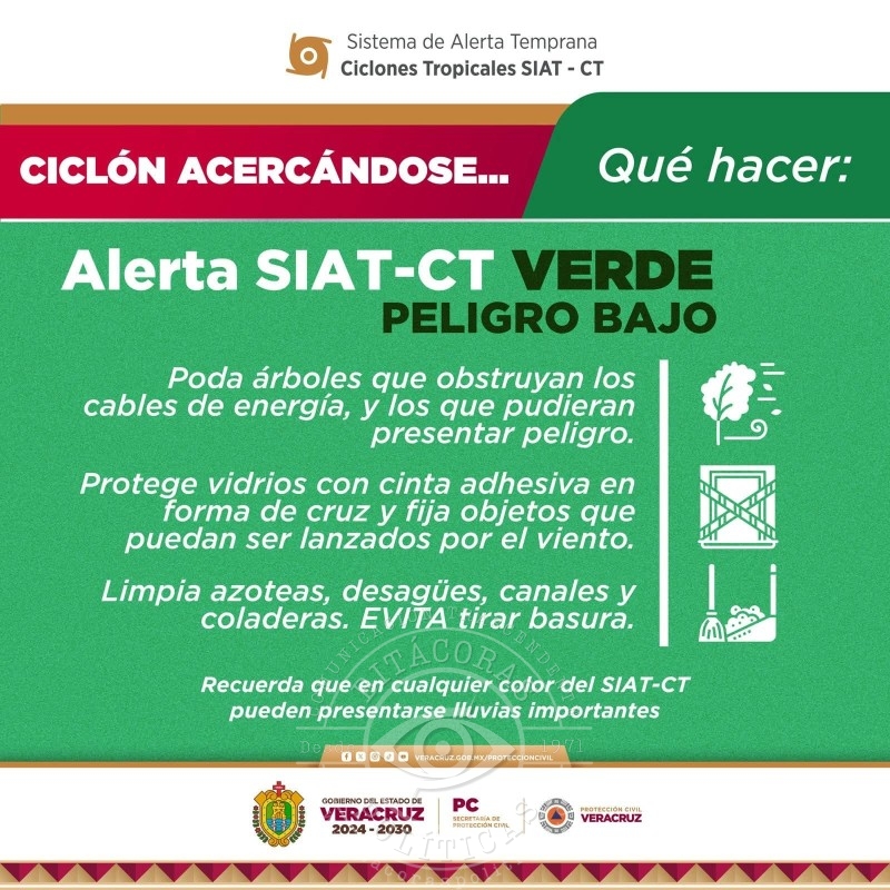 Protección Civil activa protocolo preventivo ante el posible ingreso del ciclón entre el norte de Veracruz y el sur de Tamaulipas; autoridades piden seguir información oficial.
