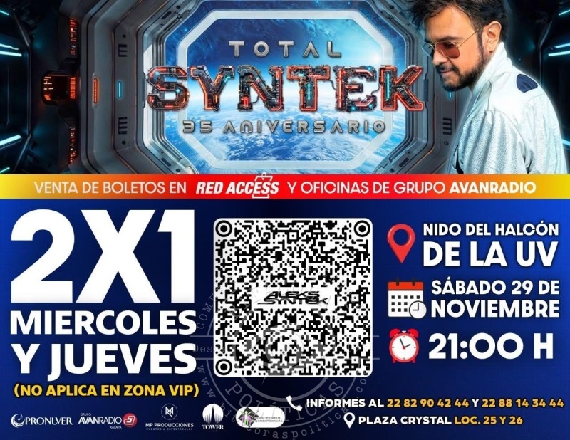 El espectáculo “Syntek Total” se presentará en el Nido del Halcón; los boletos están disponibles en Red Access y oficinas de Grupo Avanradio con descuento especial este miércoles y jueves.