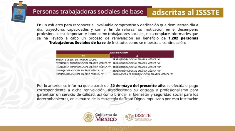 ● El director general, Martí Batres, a partir del viernes 30 de mayo, informó que se renivelaron las percepciones salariales de trabajadores sociales en el organismo, en reconocimiento a su esfuerzo vital y su conocimiento