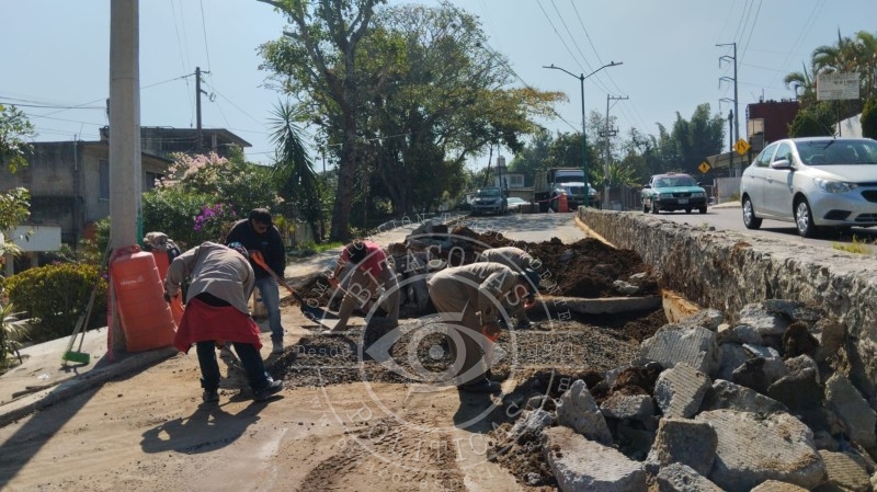 La administración municipal atendió una fuga de aguas negras en la calle Papantla para prevenir riesgos a la salud y mejorar las condiciones del entorno.