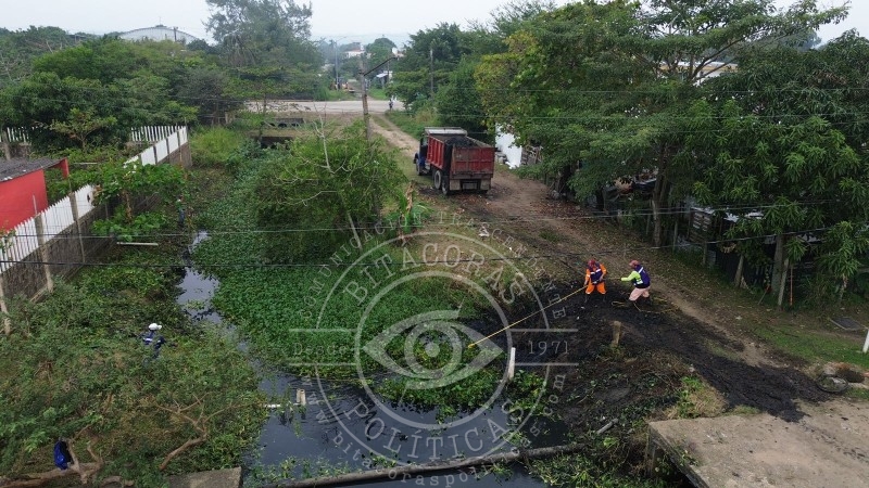 Tras la visita del alcalde Pedro Miguel Rosaldo, cuadrillas municipales atendieron limpieza, desazolve y alumbrado público en el fraccionamiento Ciudad Olmeca lado río.