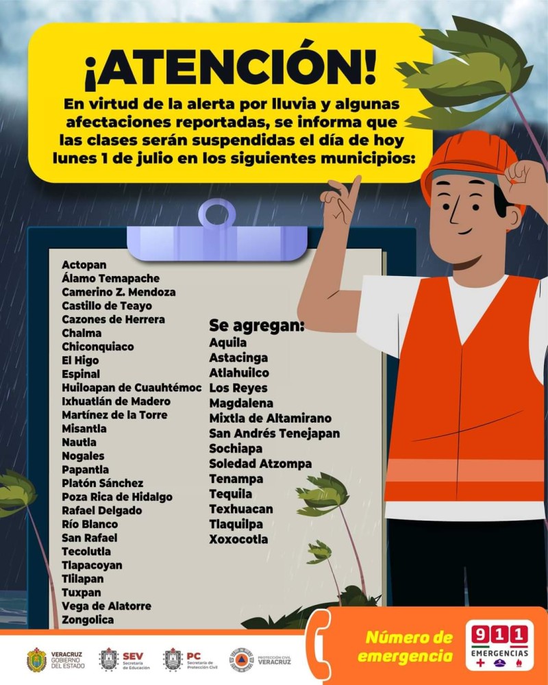 Suspende SEV clases en 41 municipios por TT Chris