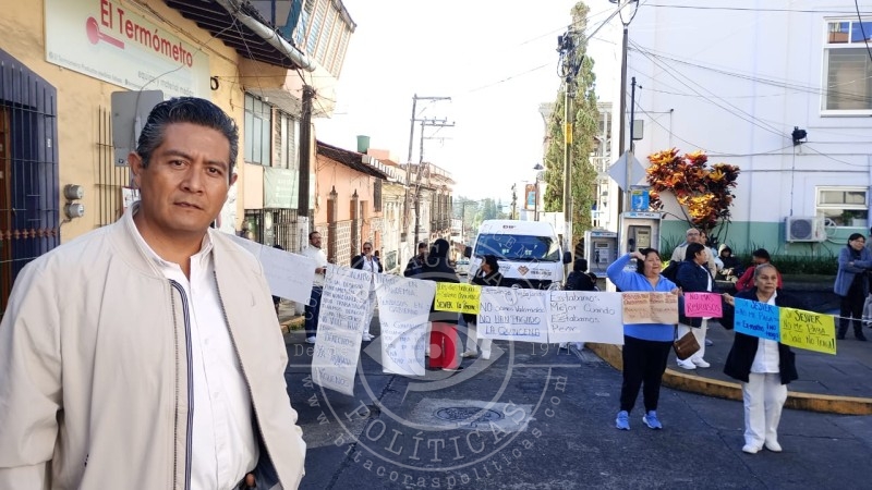 Trabajadores del Hospital Luis F. Nachón bloquearon la calle Nicolás Bravo por el adeudo de la primera quincena; Gobierno estatal informó que antes del mediodía se liberarían 47 millones de pesos.