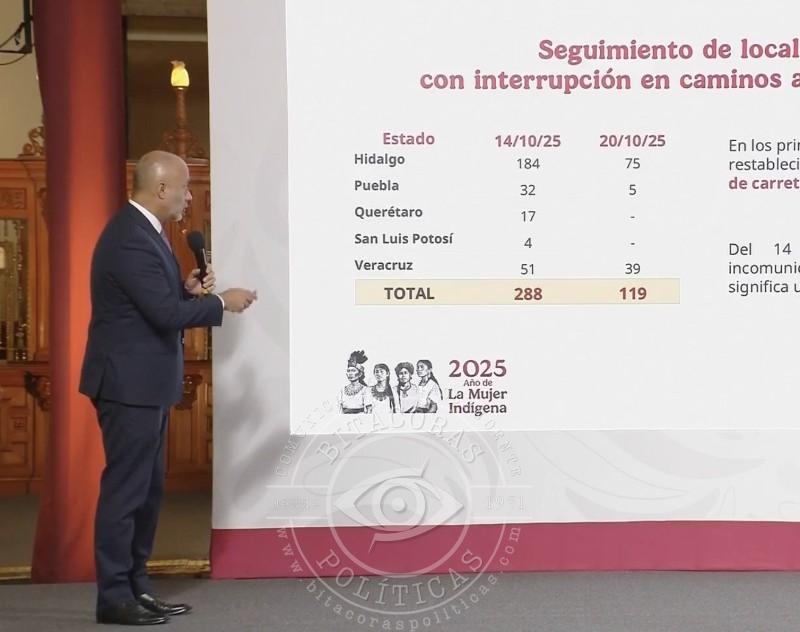 La Secretaría de Infraestructura, Comunicaciones y Transportes informó que se ha restablecido el paso en 12 de las 51 localidades afectadas, con trabajos en puentes y caminos que buscan normalizar la conexión antes de que concluya la semana.