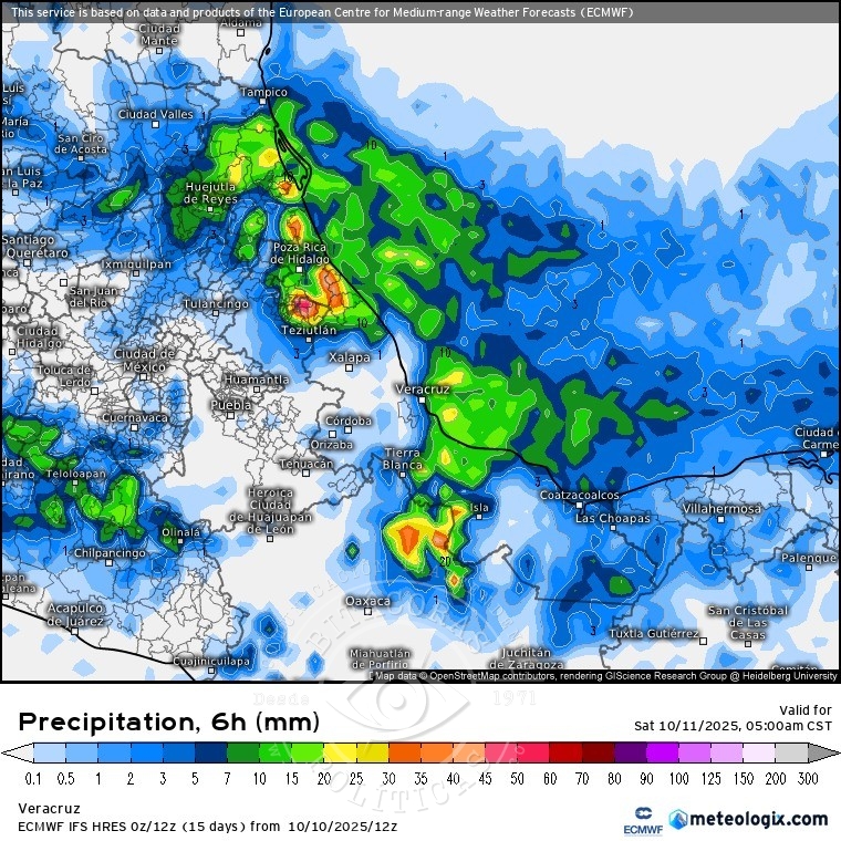 Autoridades meteorológicas prevén precipitaciones aisladas en las cuencas del Tuxpan, Tecolutla, Nautla, Jamapa-Cotaxtla y Papaloapan, con riesgo de deslaves e inundaciones.