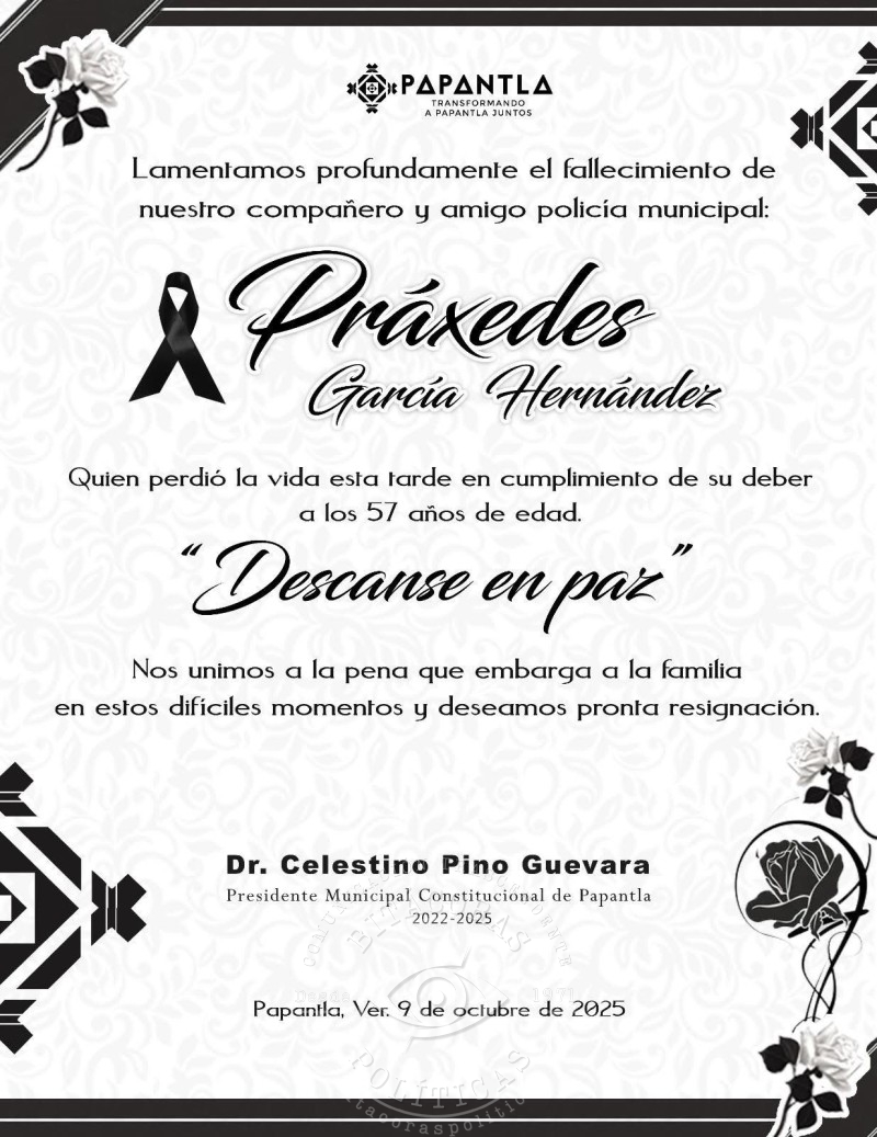 El elemento municipal Praxedes García perdió la vida mientras ayudaba a familias atrapadas por las lluvias en la comunidad de San Pablo; autoridades lamentan el hecho y destacan su labor heroica.