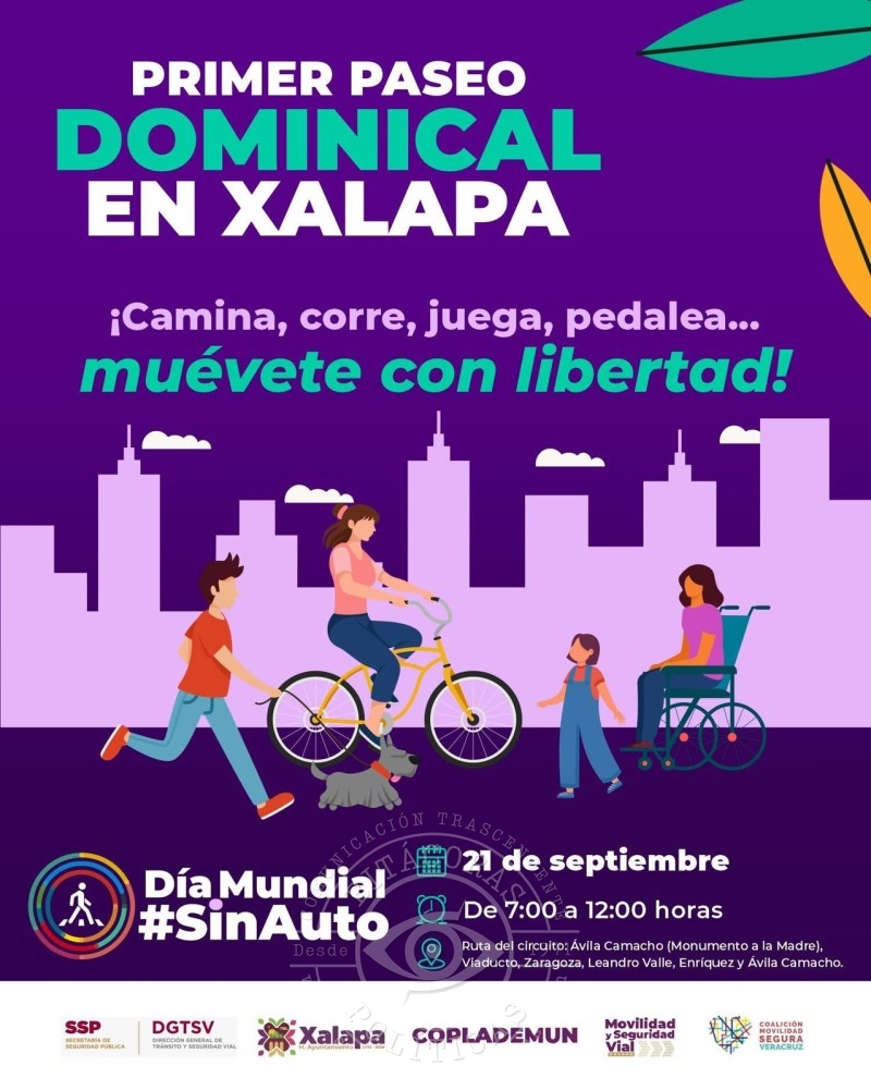 La Coalición Movilidad Segura Veracruz y el Ayuntamiento convocan a la ciudadanía a participar en un circuito recreativo sin tránsito vehicular este domingo de 7:00 a 12:00 horas en el Centro de la ciudad.