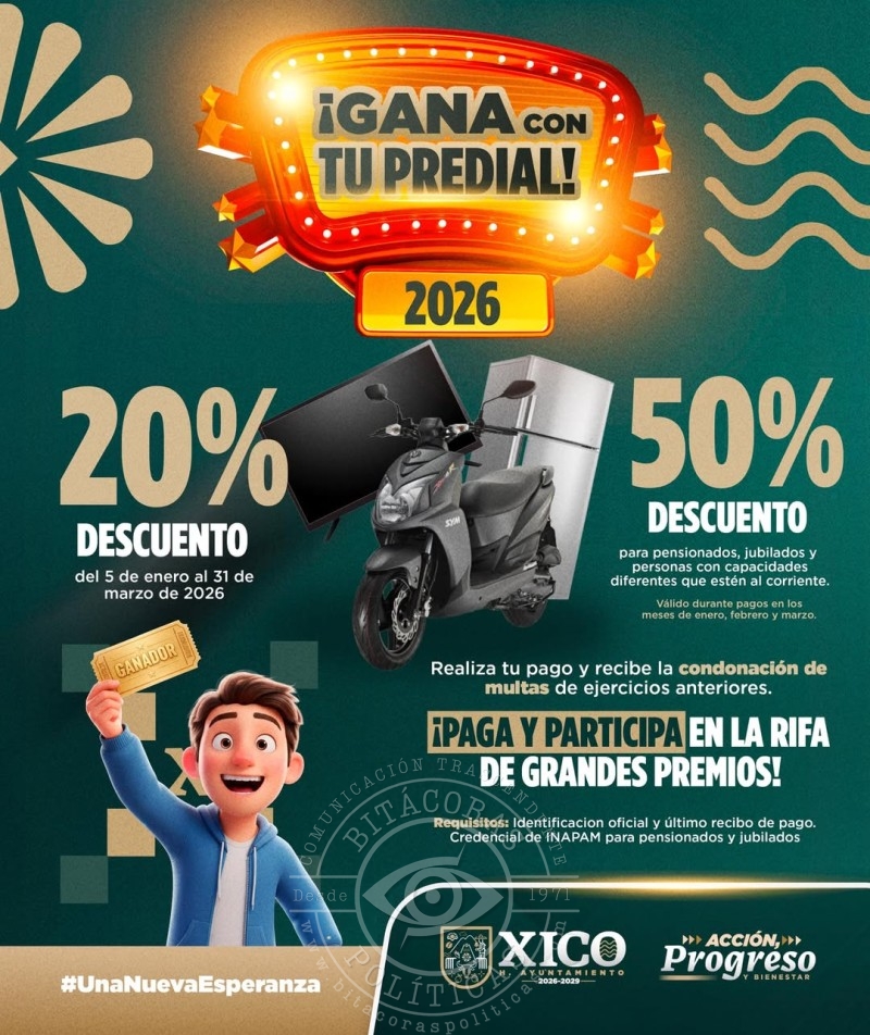 Contribuyentes en general podrán acceder a un 20% de descuento y pensionados, jubilados y personas con discapacidad a un 50%, además de condonación de multas y participación en una rifa.