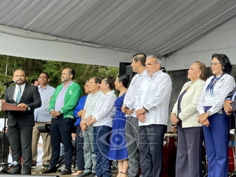 El director Irving Ilhuicamina Mendoza Ruíz encabezó la guardia de honor en Xalapa y destacó la misión del TEBAEV de llevar educación a comunidades rurales y marginadas.