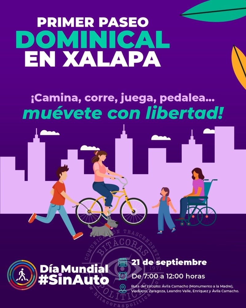 El 21 de septiembre se realizará el Primer Paseo Dominical, con un circuito seguro para peatones, ciclistas y patinadores; autoridades municipales llaman a fomentar movilidad no motorizada.