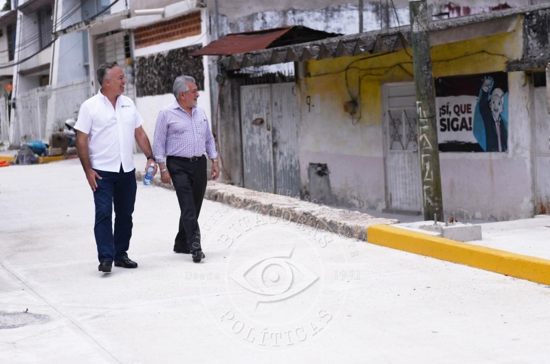 La obra con concreto hidráulico en la calle Agua Santa incluye alumbrado público y busca mejorar la movilidad y seguridad