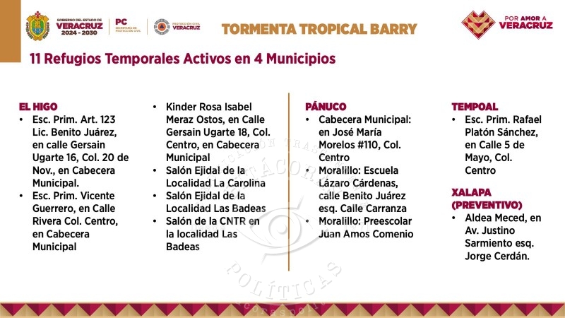 Autoridades de Protección Civil llaman a evacuar zonas de riesgo de forma preventiva; 11 albergues abiertos en cuatro municipios y más podrían sumarse en las próximas horas.