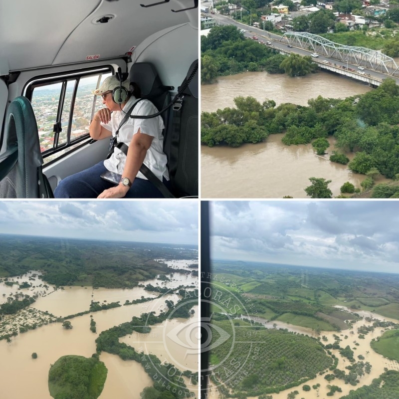 La gobernadora recorrió por aire y tierra los municipios más impactados por las inundaciones y coordinó acciones de auxilio con los tres niveles de gobierno ante el desbordamiento de ríos y arroyos.