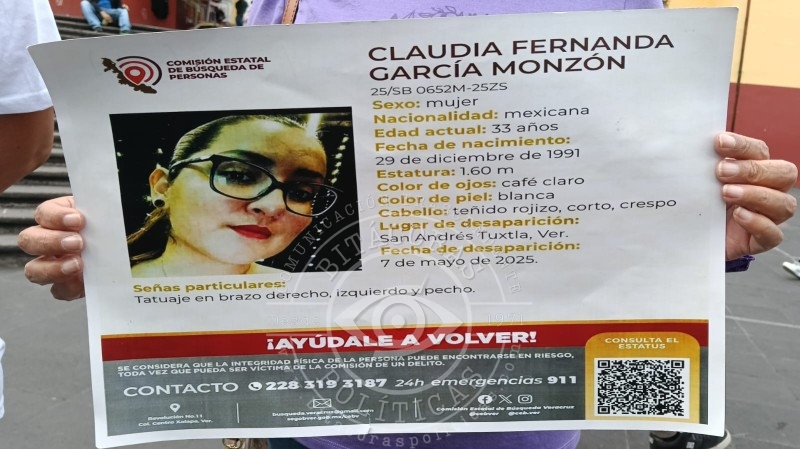 A siete meses de la desaparición de Claudia Fernanda García Monzón, su madre acudió al centro de Xalapa para exigir avances y solicitar ayuda ciudadana en la búsqueda.