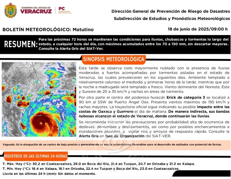 Con vientos sostenidos de hasta 140 km/h y oleaje de hasta 5 metros, el ciclón podría provocar deslaves, inundaciones y crecidas de ríos; Protección Civil pide extremar precauciones.