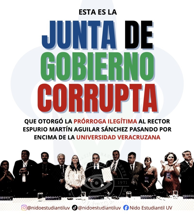 El colectivo Nido Estudiantil UV difundió en redes una campaña que señala a integrantes del órgano universitario de haber favorecido, sin consenso, la permanencia del actual rector.