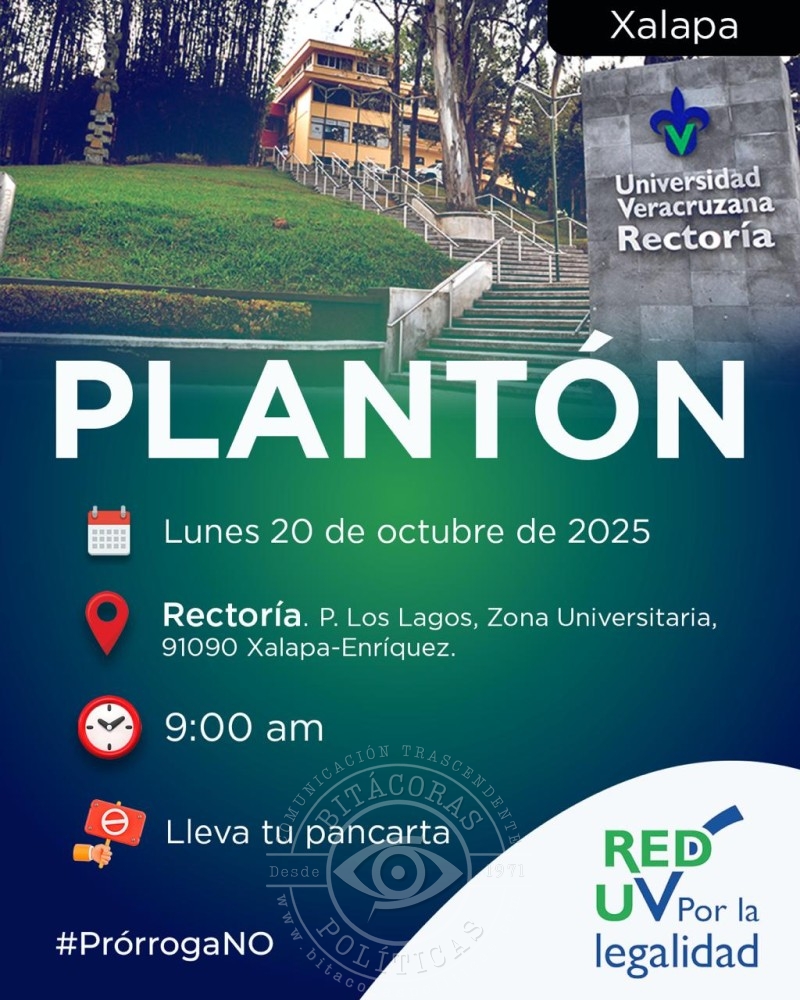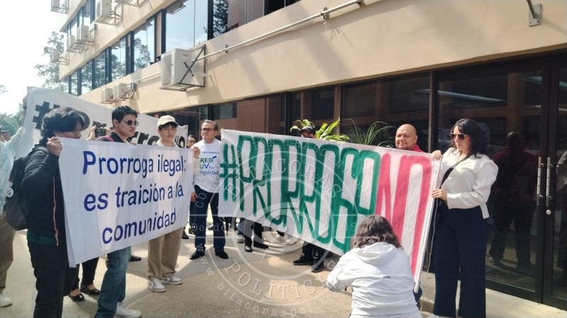Integrantes de la Red UV por la Legalidad realizaron un plantón frente a la Rectoría para demandar una pronta resolución judicial y proponen al Congreso emitir un decreto que declare ilegal la prórroga del actual rector.