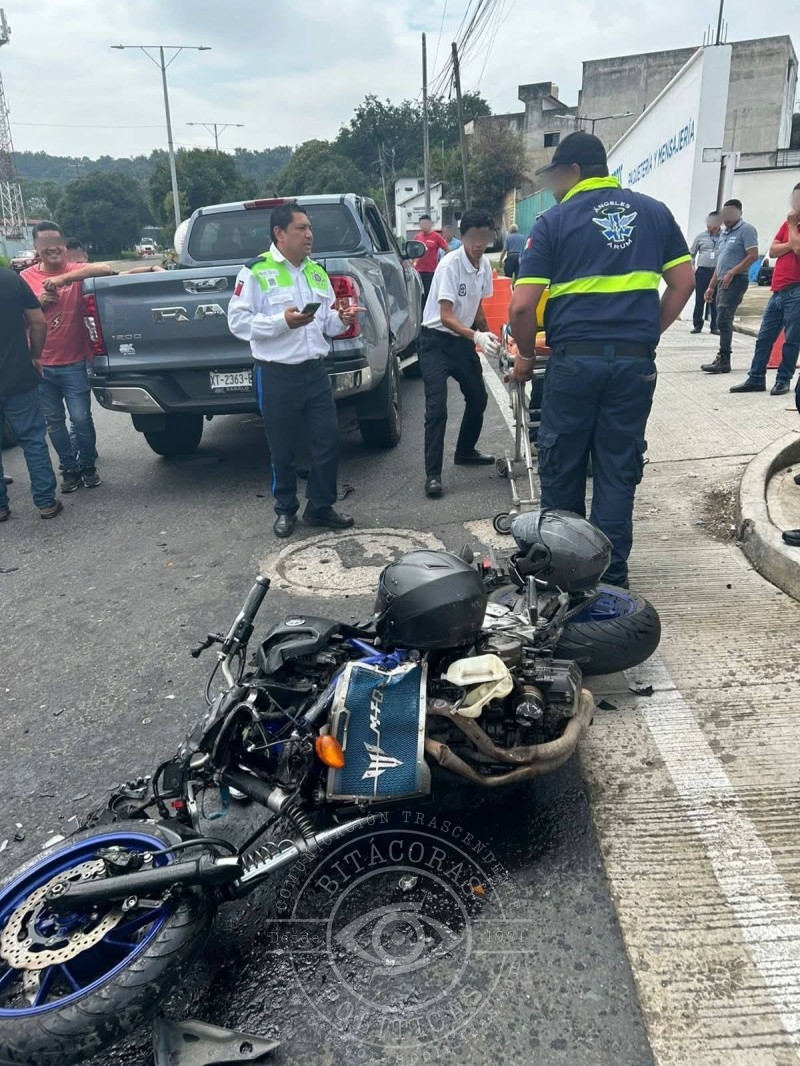 Dos jóvenes permanecen hospitalizados tras un percance en la carretera Xalapa–Perote; testigos acusan a un agente de tránsito de permitir la huida de la responsable.