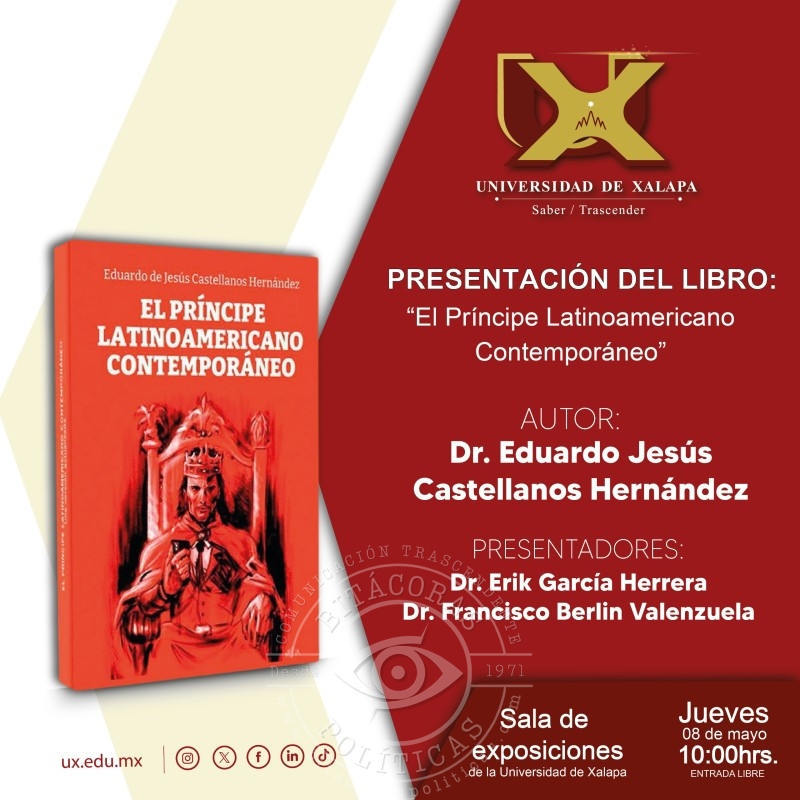 La Universidad de Xalapa será sede de la presentación del libro que reflexiona sobre el poder y la política en América Latina; participarán los doctores Erik García Herrera y Francisco Berlín Valenzuela